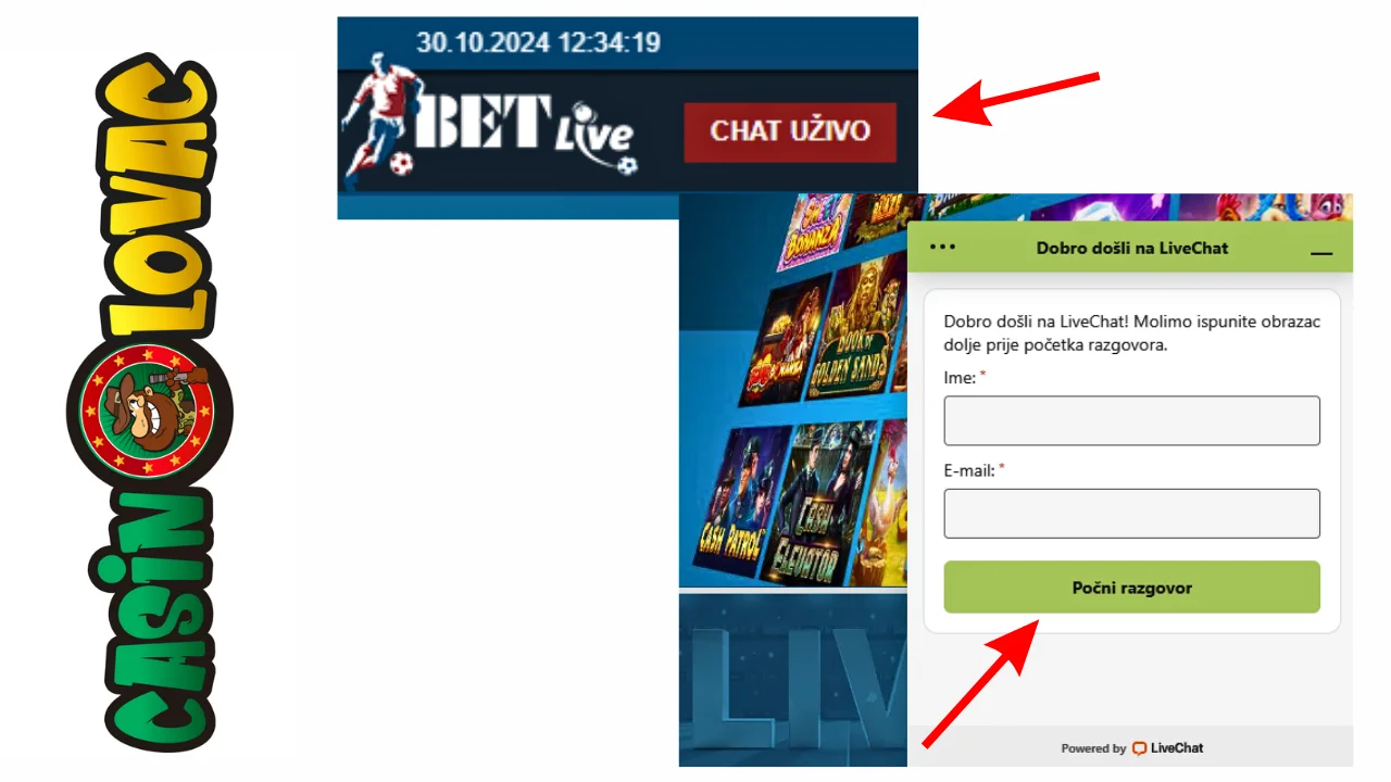 Da, Bet-live nudi live chat podršku. Live Chat dugme možeš pronaći u gornjem lijevom uglu stranice.