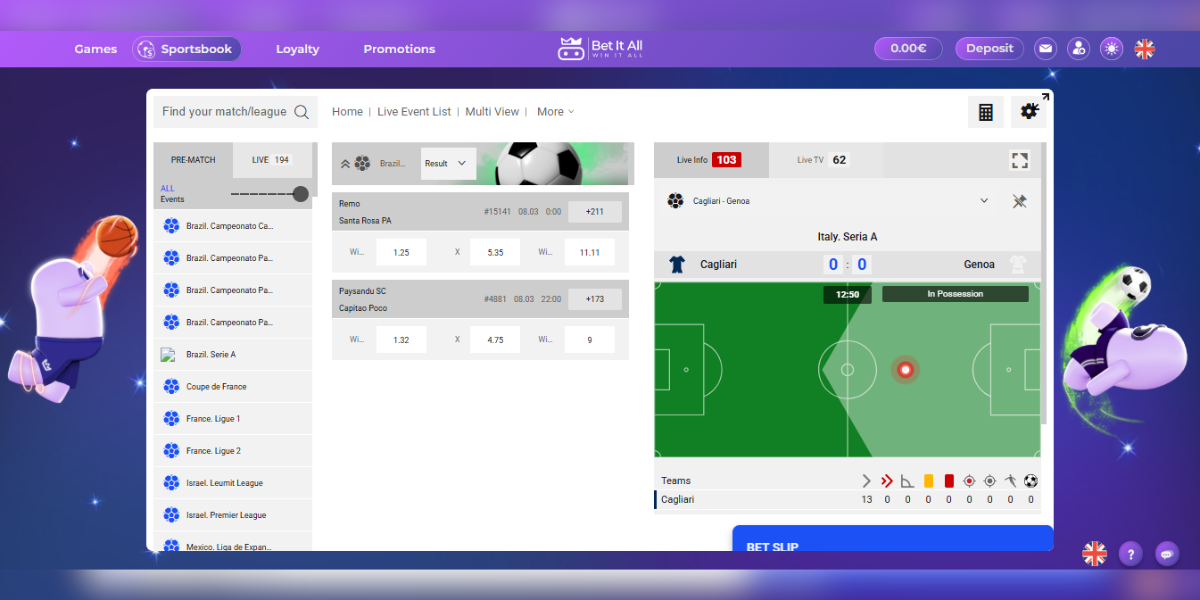 Osim klađenja uživo, Bet It All također nudi live streaming, što znači da možeš pratiti omiljene sportske događaje u realnom vremenu. Ovo ti omogućava da u potpunosti uživaš u atmosferi sportskih utakmica, dok istovremeno postavljaš svoje opklade.