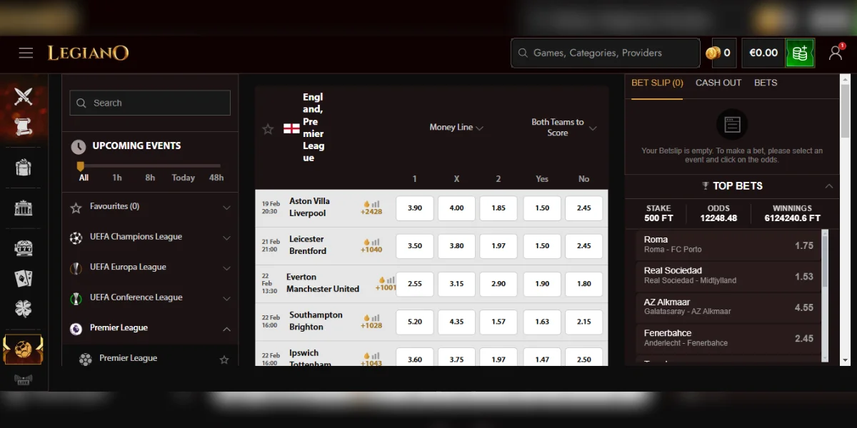 Legiano Casino donosi vrhunsko iskustvo sportskog klađenja s bogatim izborom sportova i događaja. Bez obzira na vaš omiljeni sport, ovdje ćete pronaći sve što vam je potrebno za uzbudljivo klađenje!