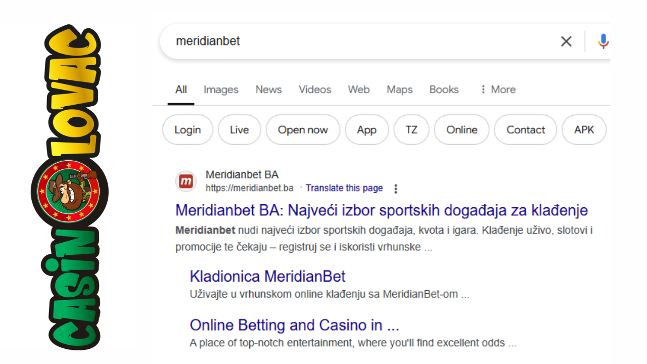 Otvorite zvaničnu web stranicu Meridianbet. U pretraživač upiši www.meridianbet.ba ili potraži “Meridianbet” u pretrazi. Kada uđeš na početnu stranicu, bićeš spreman za sljedeći korak..
