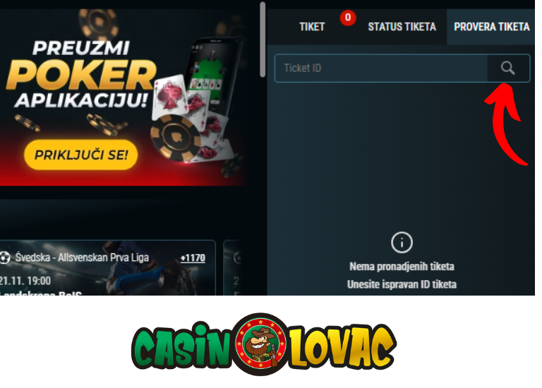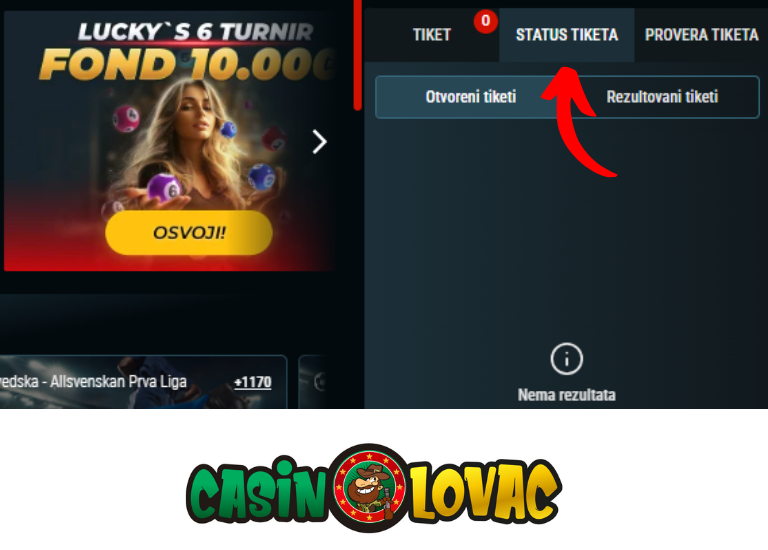 Pored opcije Status tiketa, pronaći ćete opciju Provjera tiketa. Kliknite na nju, unesite ID tiketa koji ste dobili prilikom uplate i kliknite na dugme za provjeru kako biste vidjeli status tiketa.