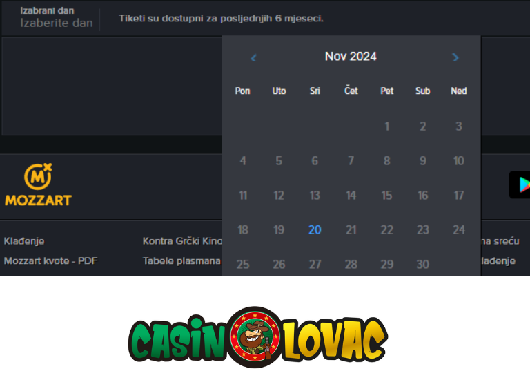 U tabeli unutar odjeljka Tiketi možete vidjeti sve vaše tikete sortirane po datumu. Mozzartbet čuva podatke o vašim tiketima unazad 6 mjeseci, a datum pregleda možete prilagoditi prema vlastitim potrebama.