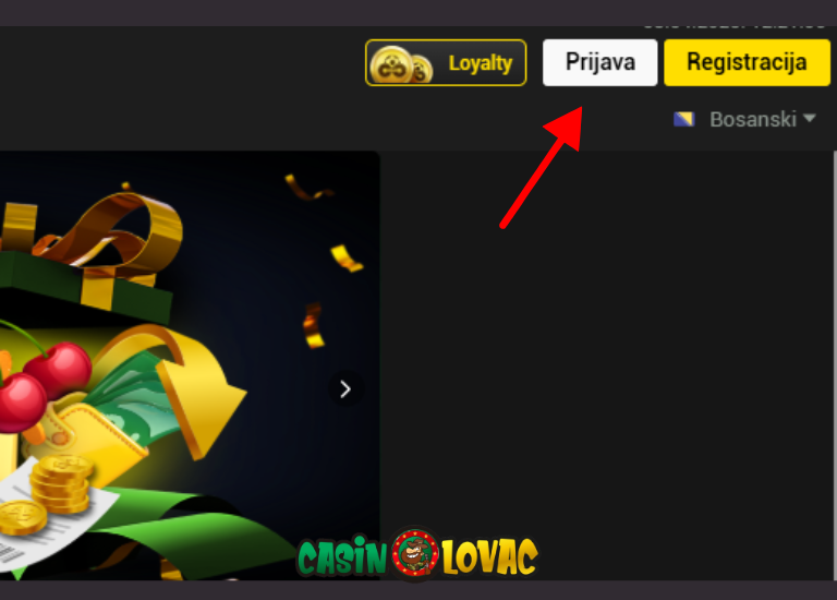 Nakon što si posjetio zvaničnu Soccerbet stranicu, klikni na dugme Prijava koje se nalazi u gornjem desnom uglu i prijavi se na svoj korisnički nalog.