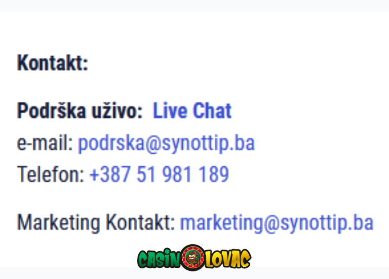 Tu možeš izabrati način kontaktiranja: Live chat, Email: podrska@synottip.ba i telefon: +387 51 981 189.